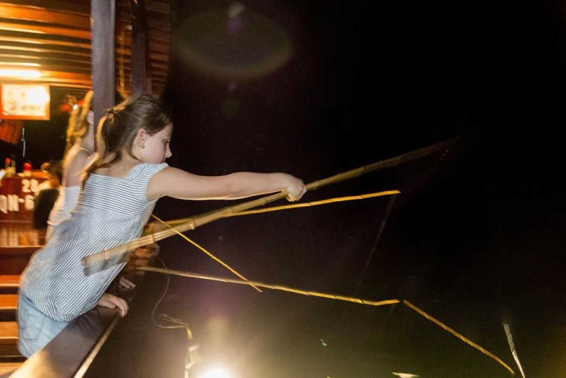Your journey begins with a quick tutorial on squid fishing methods provided by the cruise crew. Armed with a sturdy bamboo rod, shrimp-shaped bait, and a flashlight, you’re ready to dive into the experience. The bait, designed to mimic the natural movements of shrimp, is dropped into the water while a focused beam of light lures squid closer to the surface. The crew demonstrates how to gently jig the rod, mimicking the motion of prey and increasing your chances of a catch.