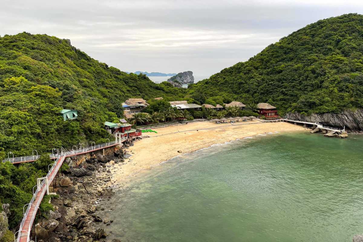 The island lies about 2 kilometers from Cat Ba Town, making it one of the most accessible yet secluded spots in the archipelago.